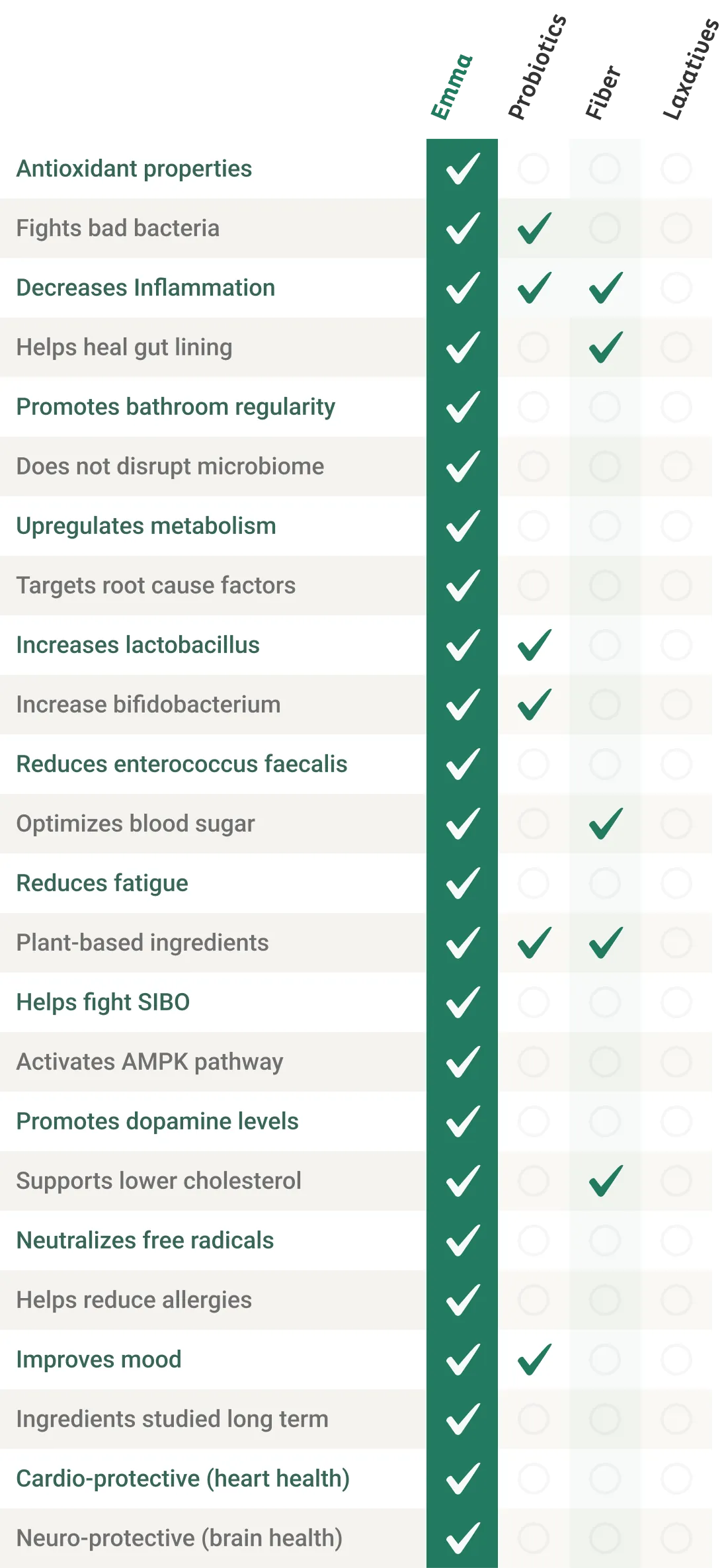 Emma supports full elimination and reduces harmful bacteria that contribute to discomfort and bloating. I am excited to endorse Emma as an effective, science-driven formula that provides my patients with real, lasting relief from their digestive symptoms, allowing them to lead healthier, happier lives.”